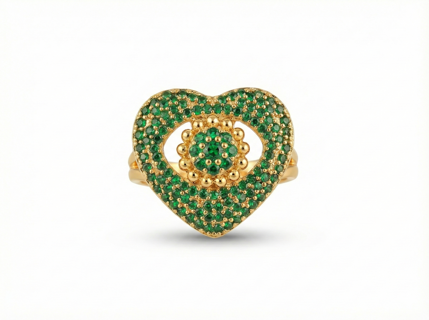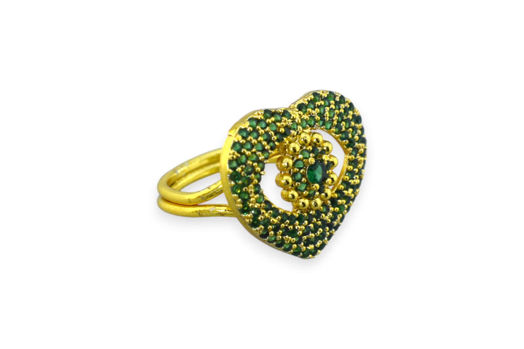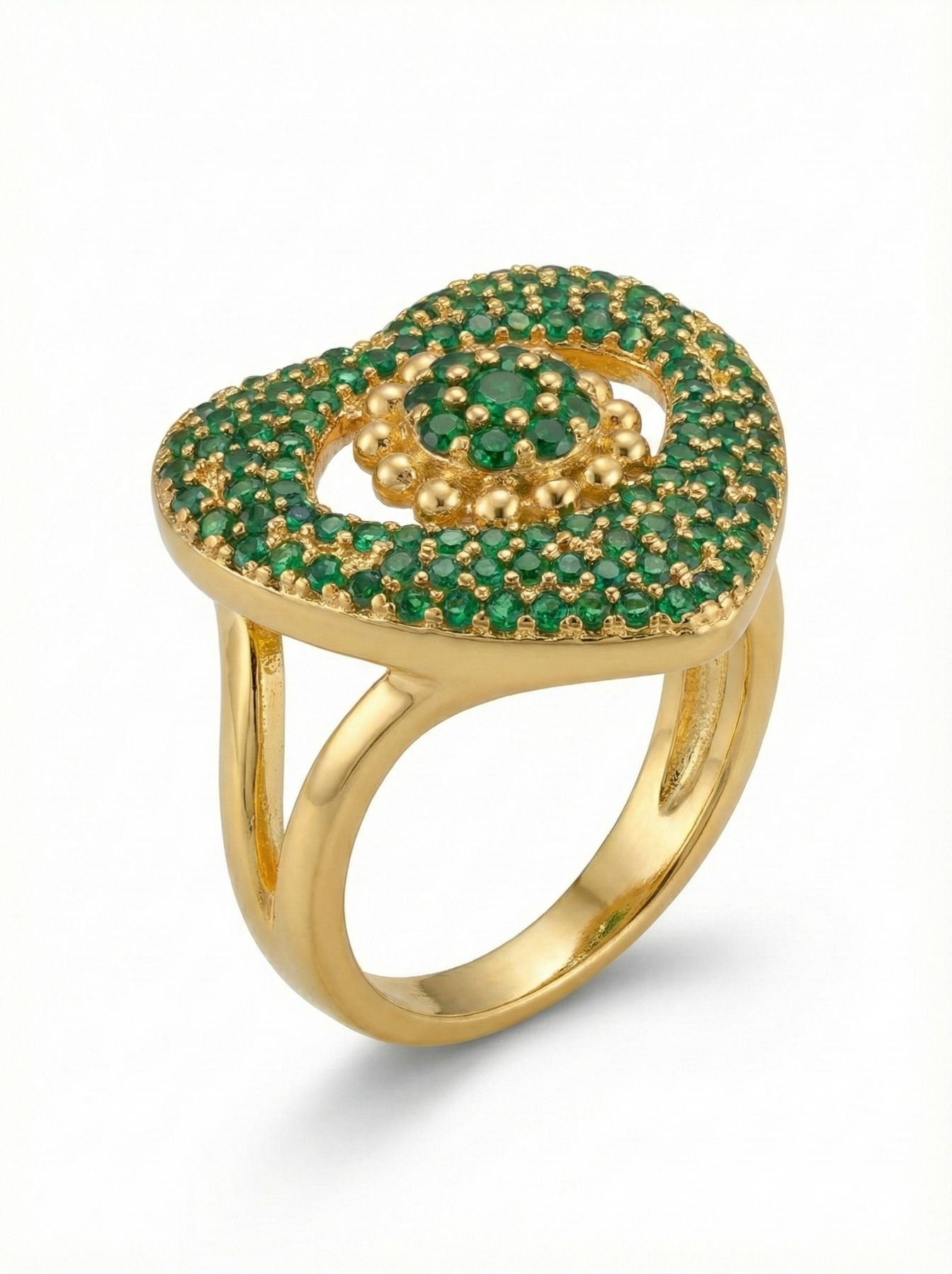 "Kardia" yüzük, ışıltılı zirkon taşlarla tamamen bezenmiş göz alıcı formu ve