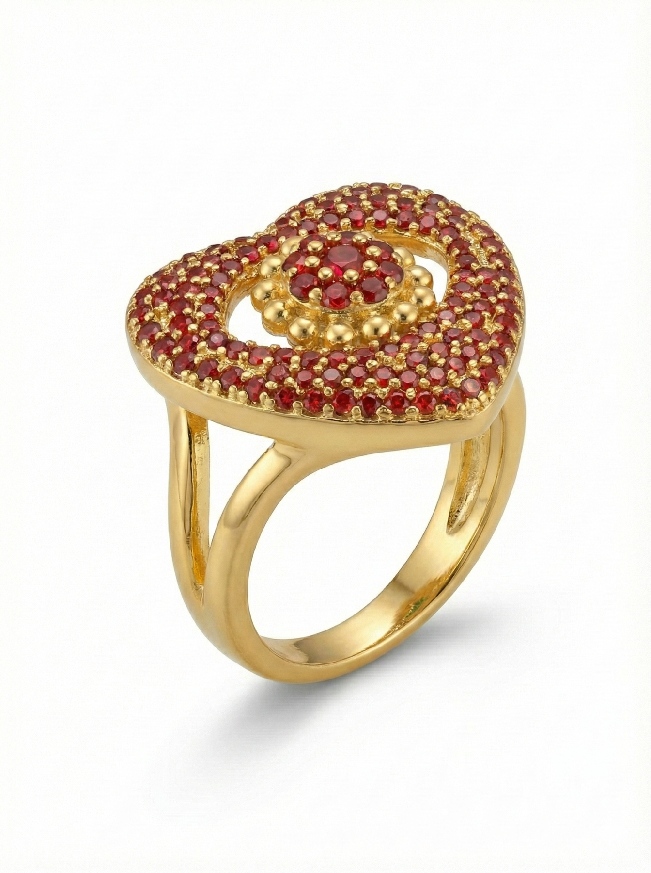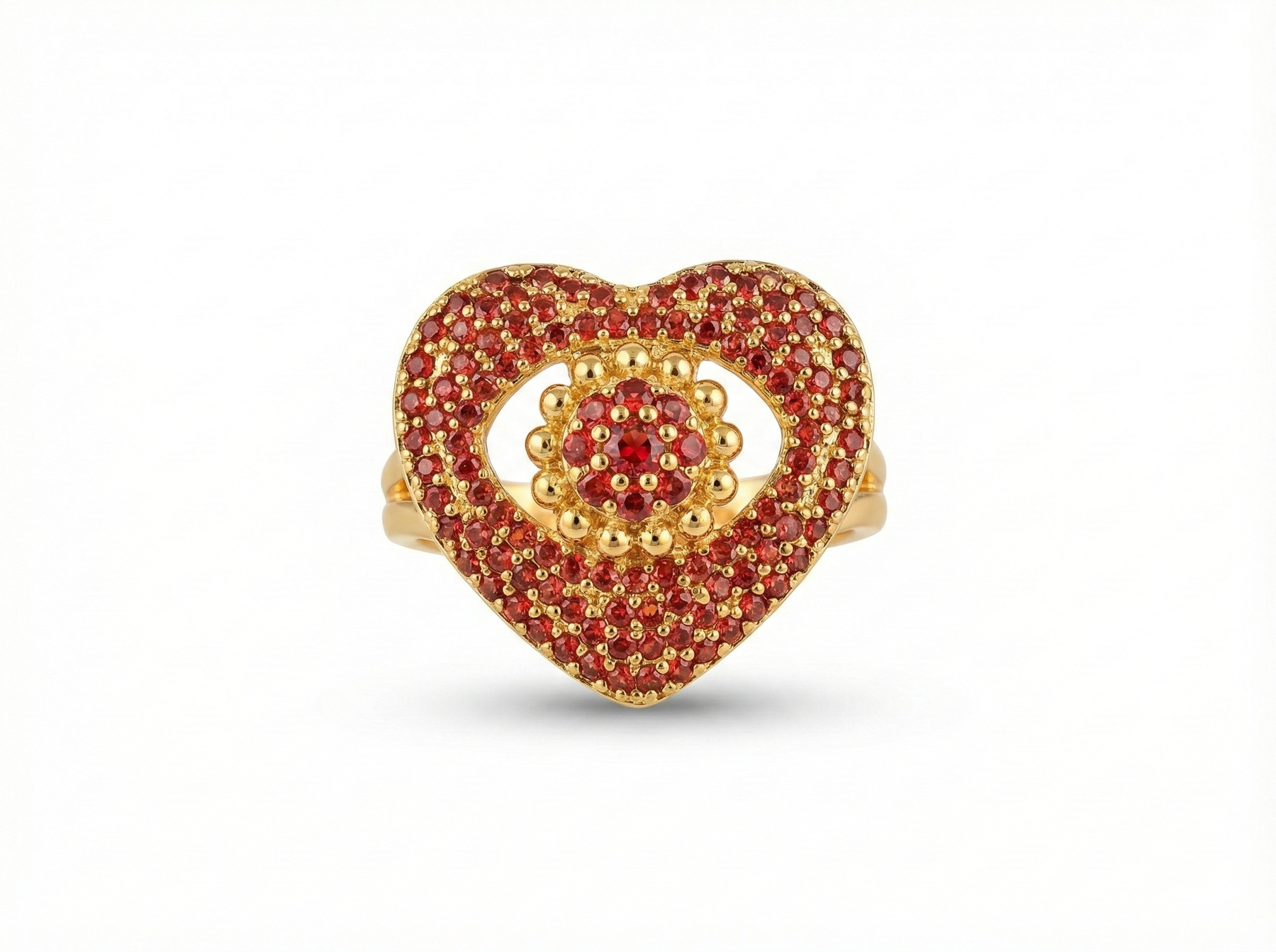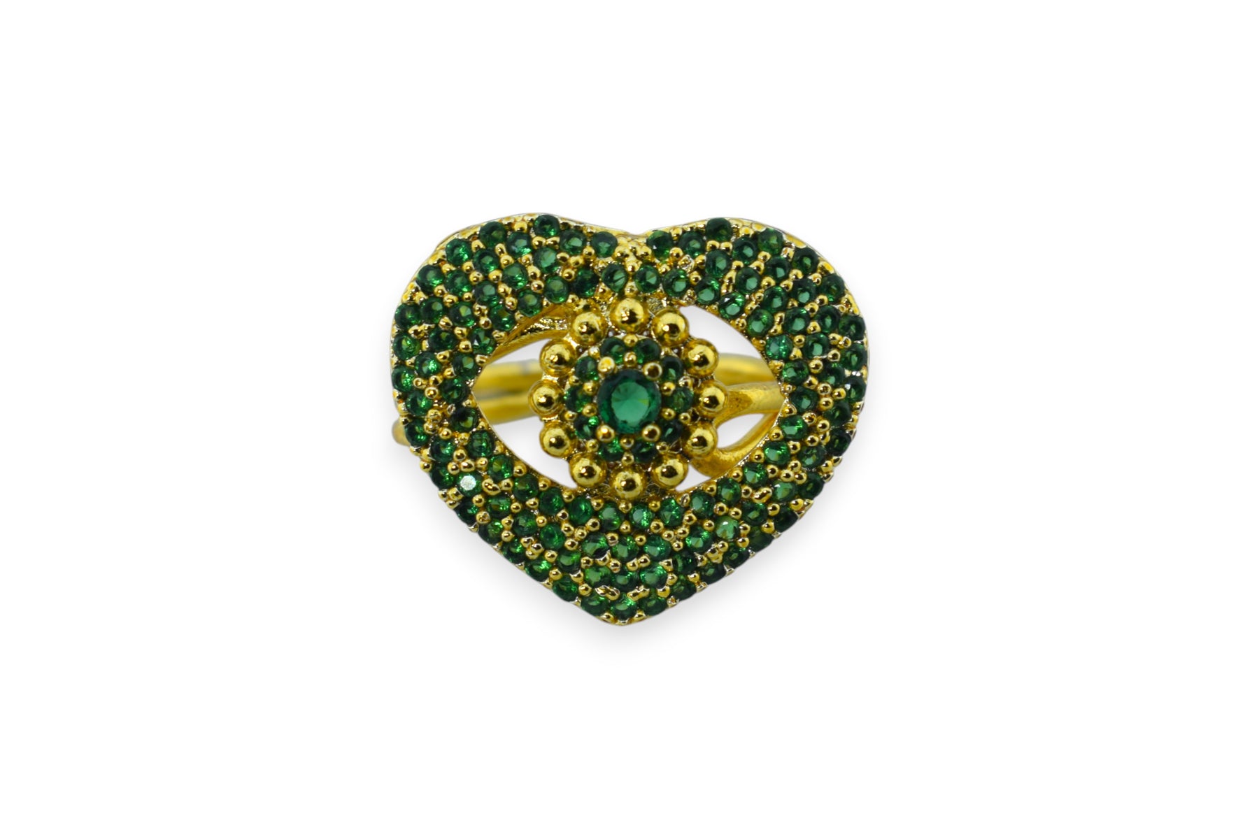 "Kardia" yüzük, ışıltılı zirkon taşlarla tamamen bezenmiş göz alıcı formu ve