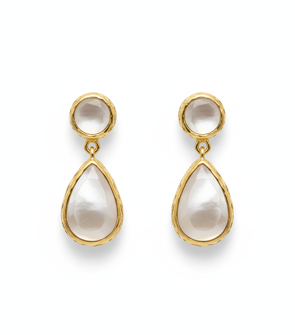 Altın çerçeveyle çevrelenmiş mat beyaz taşlar;