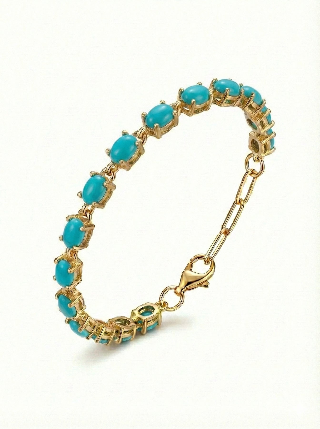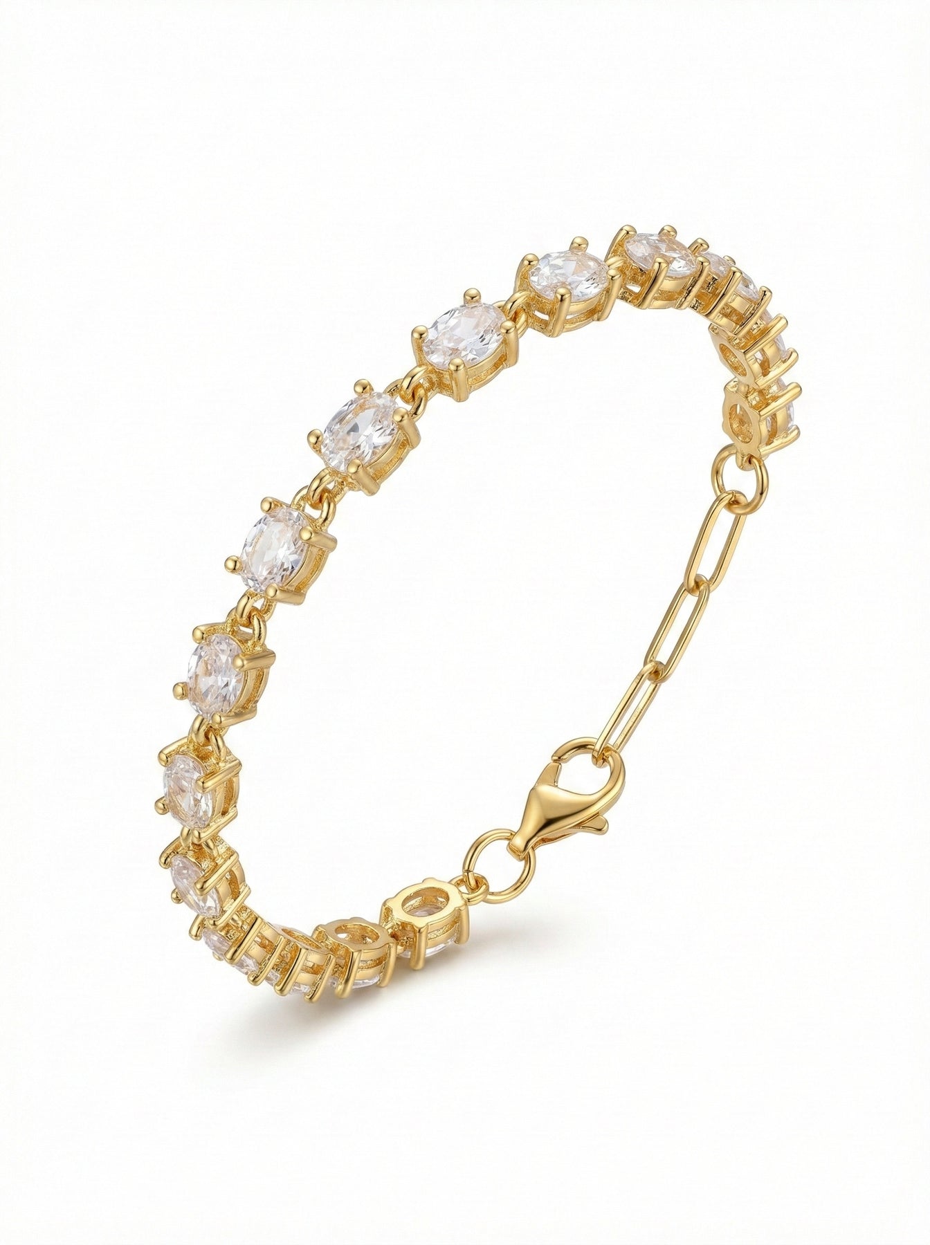 Klasik su yolu bilekliğin zarafeti, modern zincir detaylarıyla güncellendi. Oval kesim taşların ışıltısı ve altın kaplamanın sıcaklığı Nova bileklikte buluştu. Hem gündüz hem gece, her an seninle.