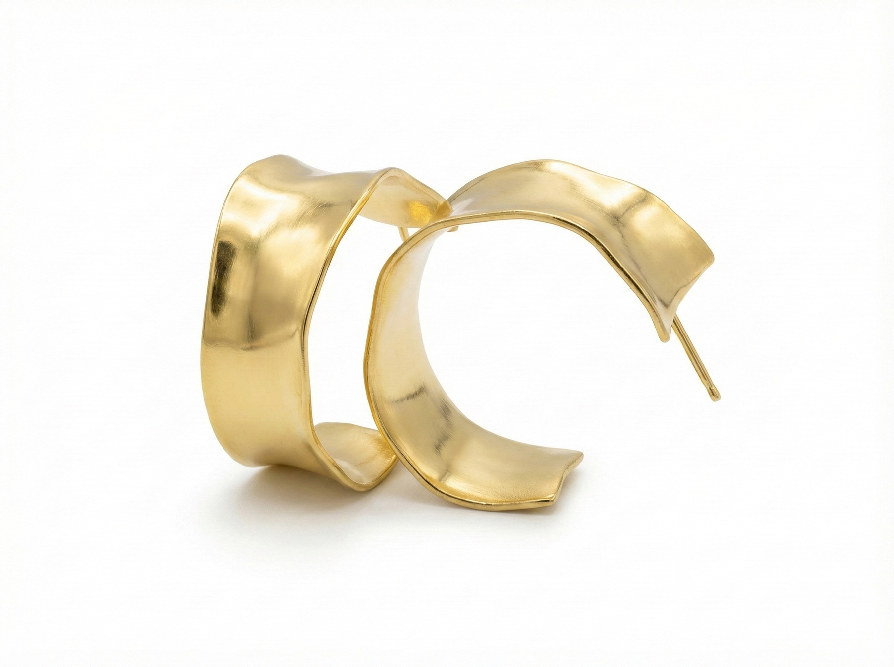 Sanat ve zarafetin buluştuğu nokta. Akışkan metal formundan ilham alınarak tasarlanan bu küpeler, klasik halka küpe anlayışına modern ve heykelsi bir yorum getiriyor. Işığı yumuşak bir şekilde yansıtan dalgalı yüzeyi ve geniş formu ile hem günlük kombinlerinize hem de gece şıklığınıza sofistike bir dokunuş katın. Sıradanlığın ötesine geçmek isteyenler için tasarlandı.