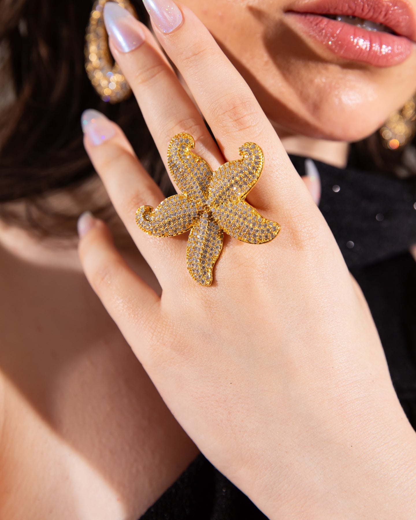 Işıltılı taşlarla süslenmiş bu özel yüzük, her dokusunda gücü, zarafeti ve özgürlüğü yansıtır.