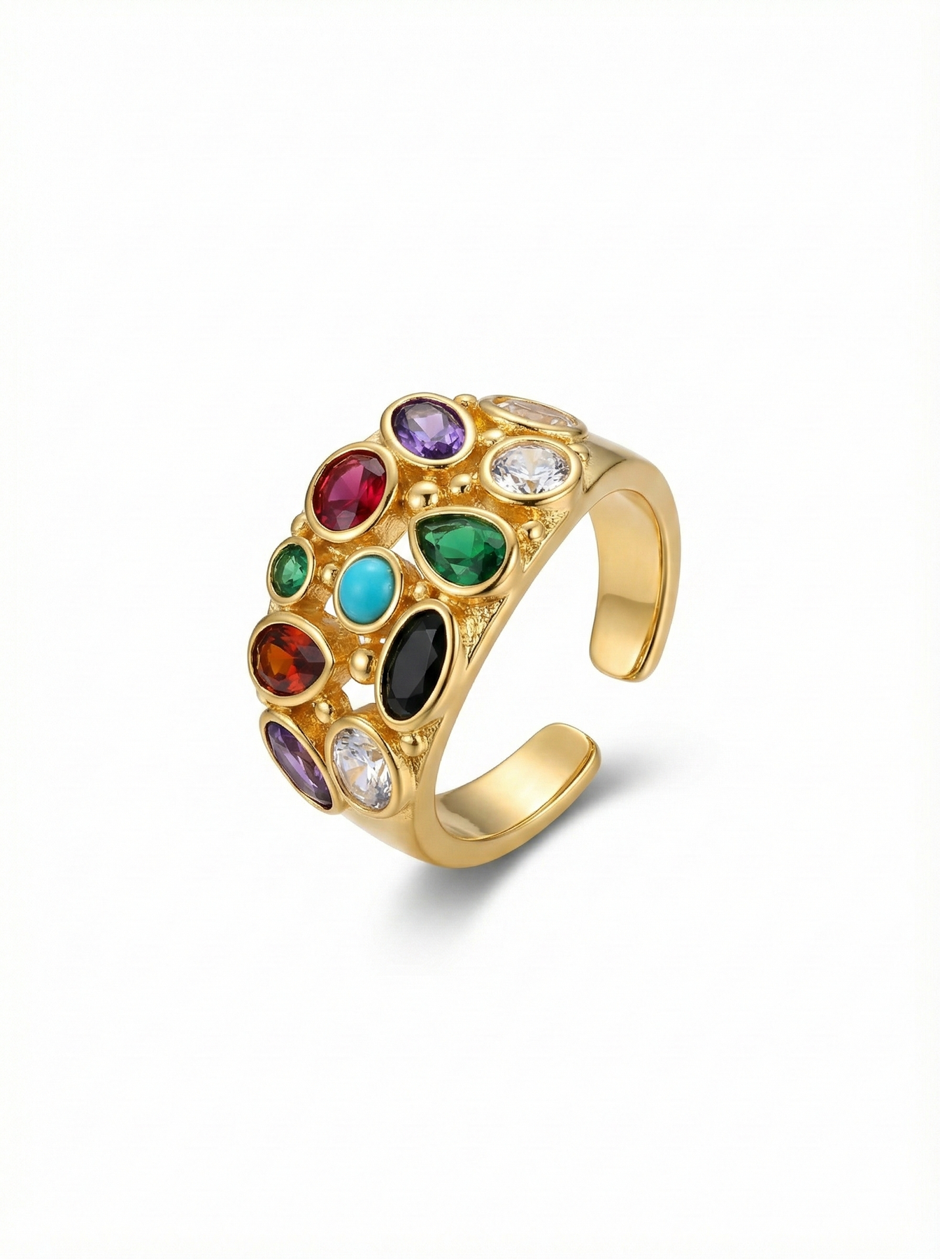 Altın zemin üzerine yerleştirilen canlı taşlar, modern bir mozaik gibi parıldar.